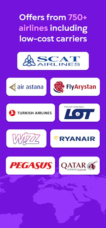 Our app allows you to search for plane and railway tickets from various in different booking systems. As a result, you get easy access to cheap offers in a matter of seconds. The list of available airlines includes the following: