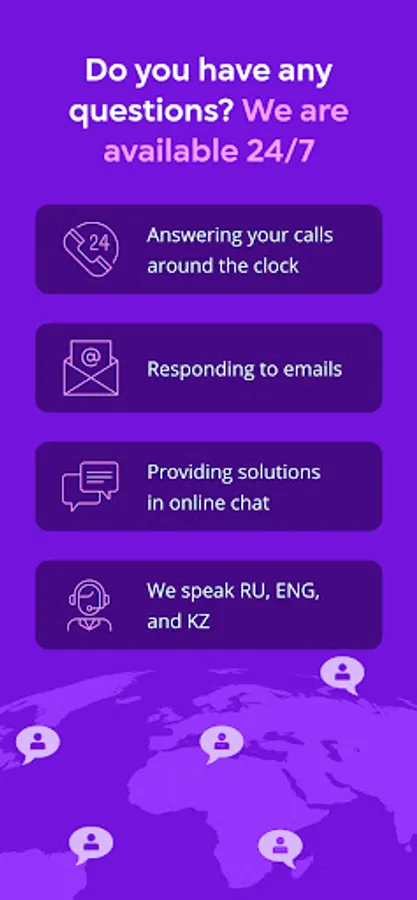 If you have any queries, please call our Customer Support right from the travel application, write us an e-mail, call or chat with our friendly support staff. If you don't feel like contacting us, you may find the answers to FAQs right in the booking app itself. We speak in Kazakh, Russian, and English!
