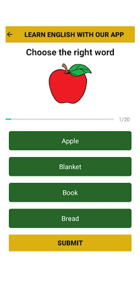 Learn new English words with our app. English Vocabulary Quiz helps you to learn new words or repeat what you already know. English Vocabulary Quiz is an off line application, you can learn English words without Internet connection. This is our first test release, we will wait for your feedback on the addition and improvement of our application. There are many exciting additions ahead, stay tuned and learn English in a simple and fun way!