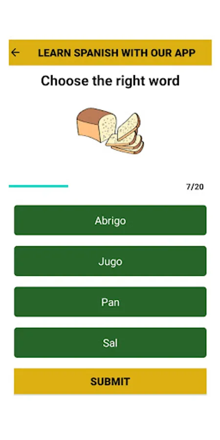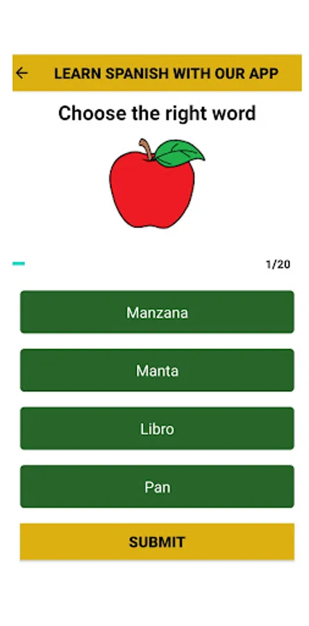 Aprende nuevas palabras en espanol con nuestra aplicación. Spanish Vocabulary Test te ayuda a aprender nuevas palabras o repetir lo que ya sabes. Spanish Vocabulary Test es una aplicación fuera de línea, puedes aprender palabras en espanol sin conexión a Internet. Este es nuestro primer lanzamiento de prueba, esperaremos sus comentarios sobre la adición y mejora de nuestra aplicación. Hay muchas adiciones emocionantes por delante, ¡estén atentos y aprendan espanol de una manera simple y divertida!