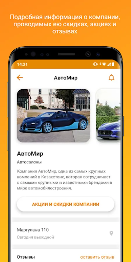 Using the CityNet application, you can keep abreast of all the promotions and discounts held in your city and in Kazakhstan as a whole. If you are an entrepreneur, then this application can significantly help in promoting your product or service on the market. By registering as a partner, you will be able to claim promotions and discounts on your product or services. If you are not an entrepreneur, then you can be aware of ongoing promotions and discounts on your favorite products or the services you need. For your convenience, we have introduced the possibility of subscribing to the category of goods or services you need, or of a particular store or enterprise, in connection with which you will receive notifications of promotions or discounts.