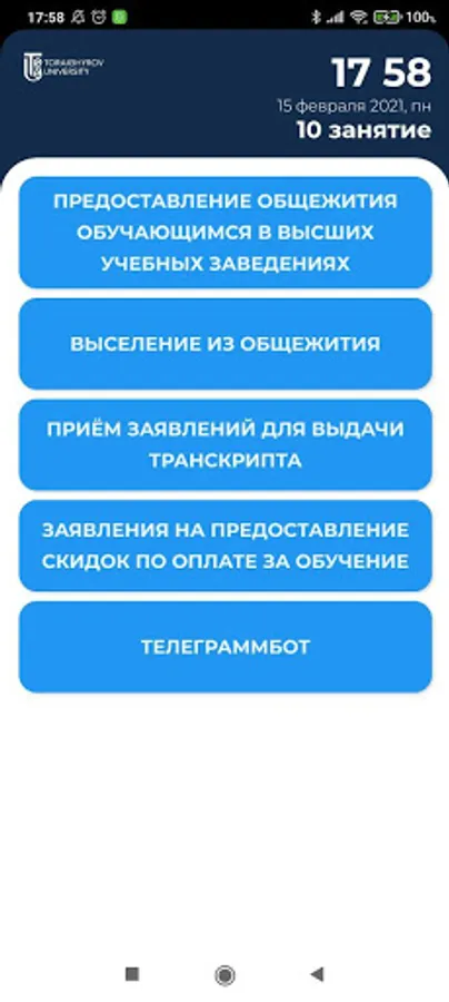 The application provides students and teachers of NJSC "Toraigyrov University" with some cases of interaction with the IS of the university.