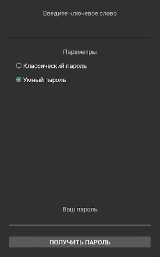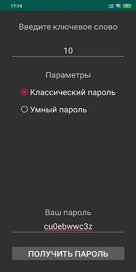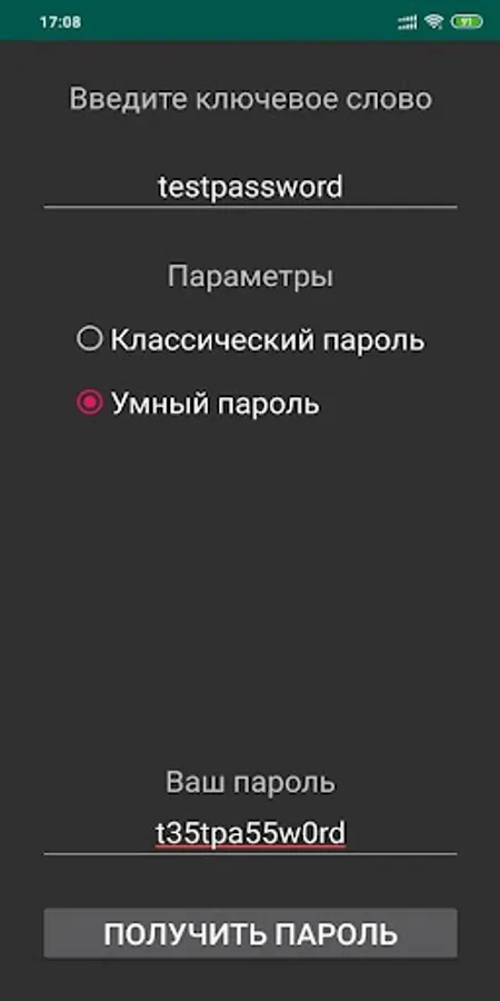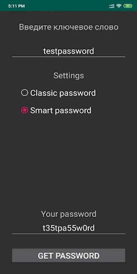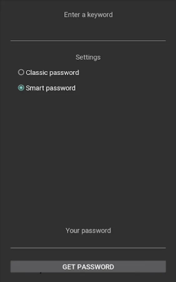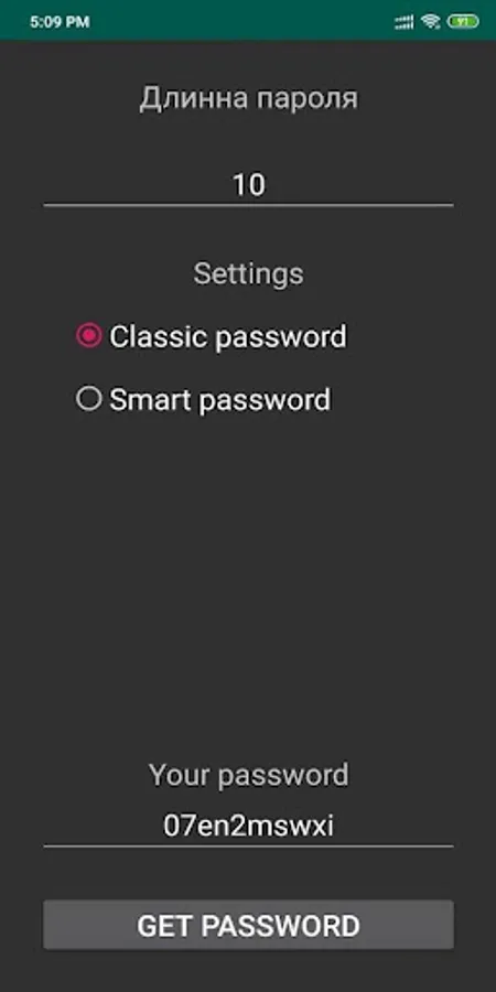 The application helps to get a smart and strong password.