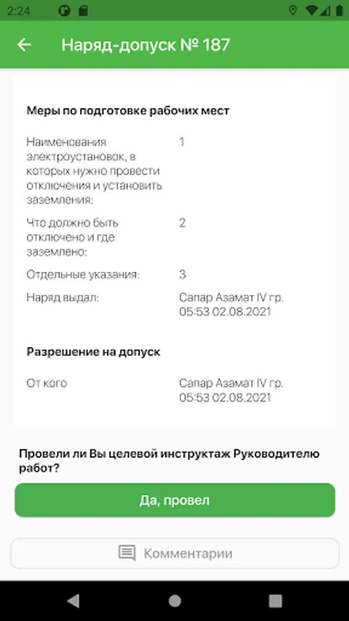 The ENZP application was developed to automate the implementation of work on orders. The main tasks of the application are to save employees' time by eliminating the need to travel to receive an order, as well as to keep track of the work performed by the Company's personnel.