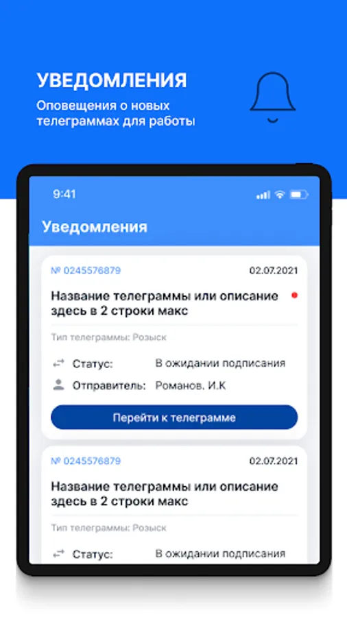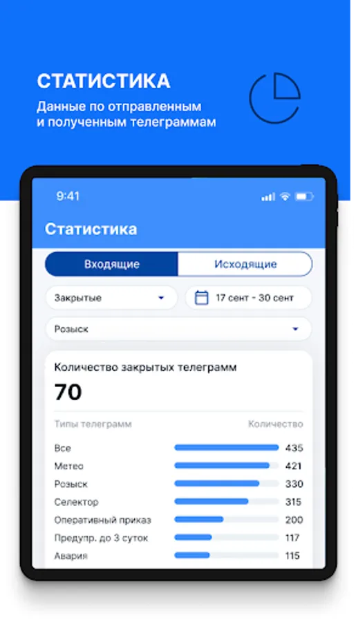 The "E-Telegram" application allows you to completely convert the process of sending and receiving telegrams at stations to an electronic format, optimize business processes, increase efficiency and safety in working with telegrams