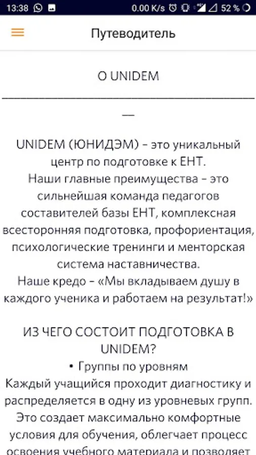 Mobile application for preparation for UNT at the UNIDEM Educational Center for staff and teachers.
