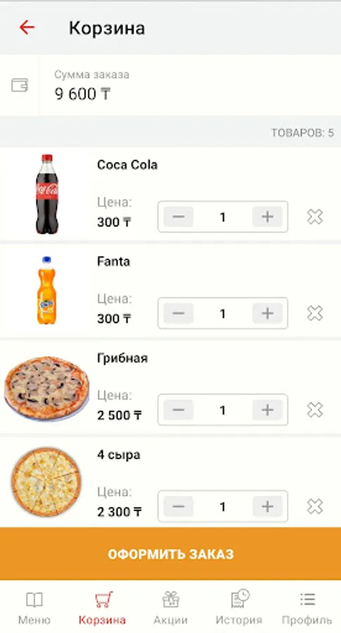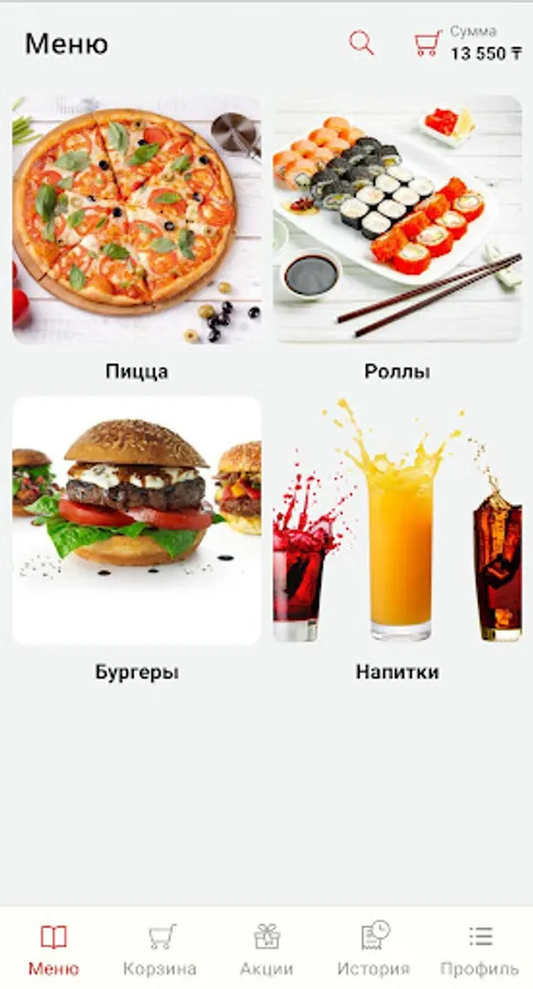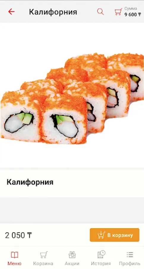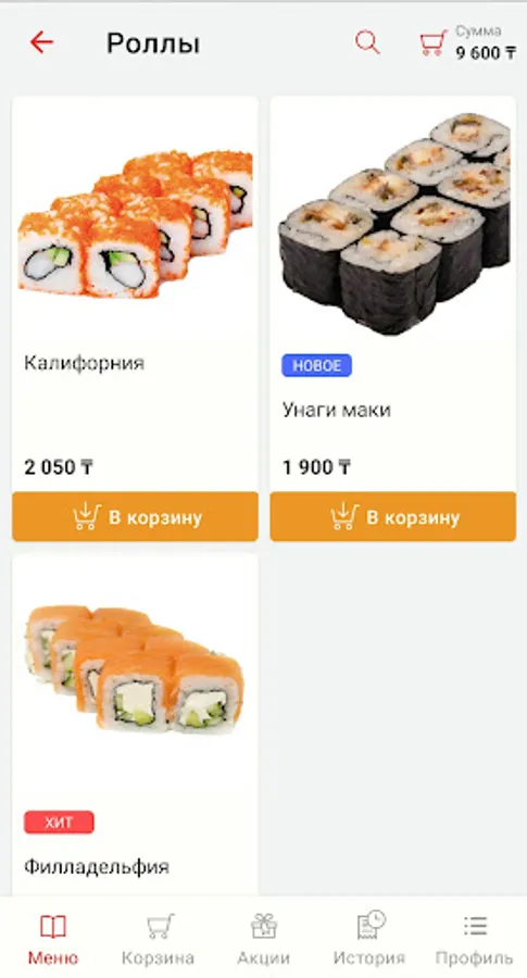 Food delivery service Villarriba. Large selection of sushi, rolls, burgers, salads