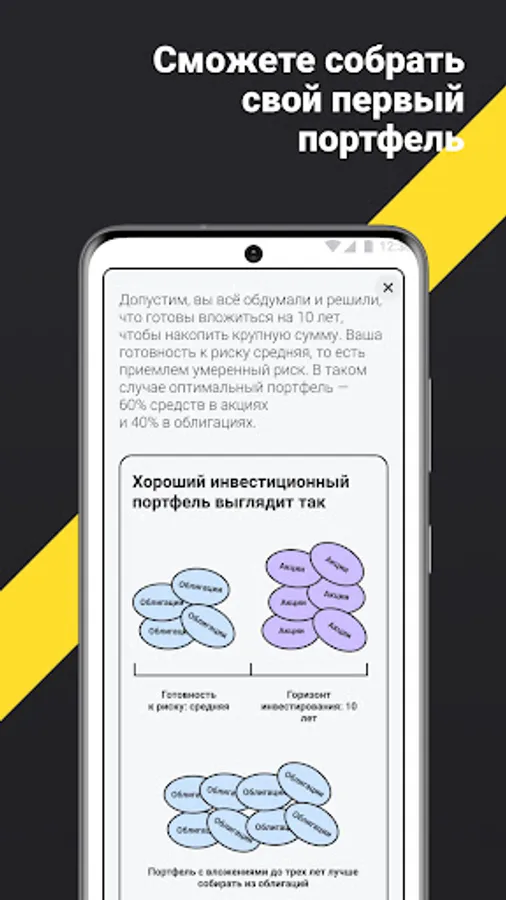 There are hundreds of different instruments in the stock market: stocks, bonds, funds, derivatives and many other possibilities. It is important not to get lost in the world of financial instruments in order to invest and earn on investments. The free application will help you choose the best instruments for your financial situation and will open access to the securities market: stock trading, OFZ, ETF and other opportunities.