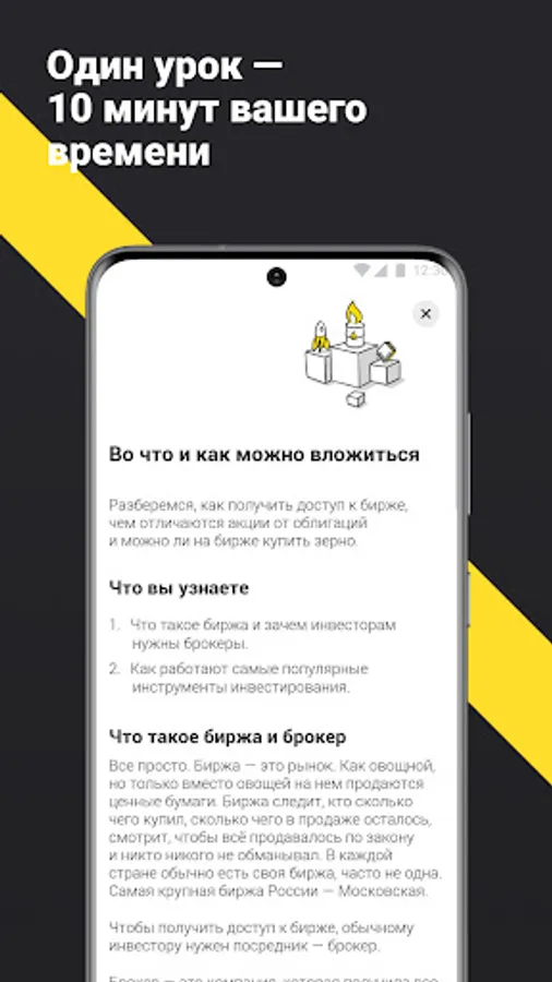 📈 Take short lessons and learn the basics of financial investment anywhere!
