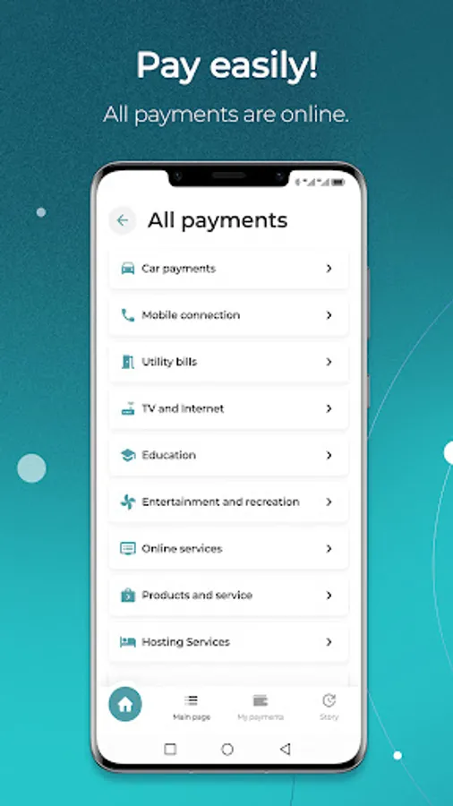 ● Payment around the clock without commissions for a wide variety of services, such as toll roads, parking, mobile communications, utilities, fines, taxes, hosting, Internet and TV, tickets and much more