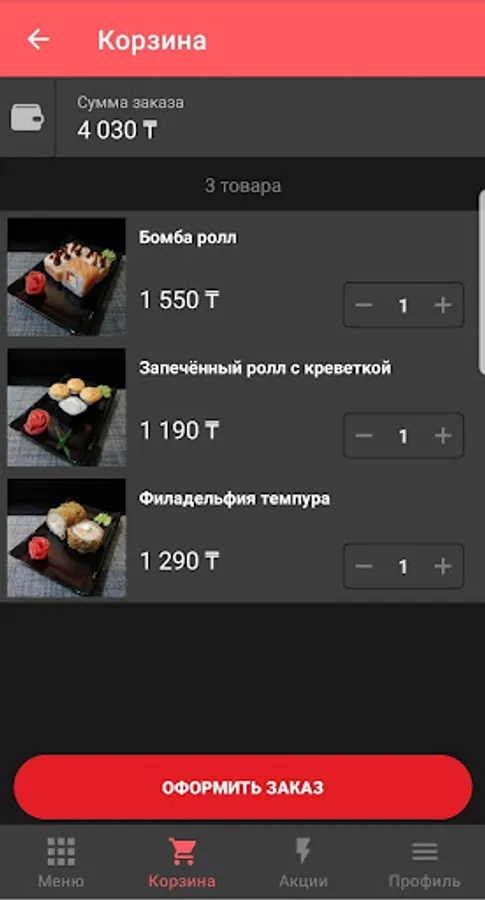 We offer exquisite Japanese cuisine to your table. A varied, constantly expanding menu, the most affordable prices in Aktobe and a flexible system of discounts combined with high quality workmanship.