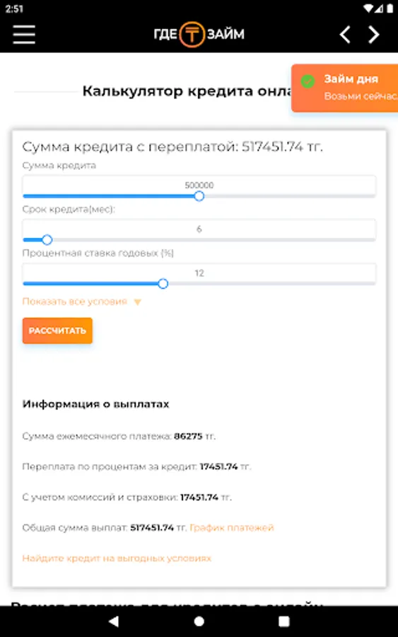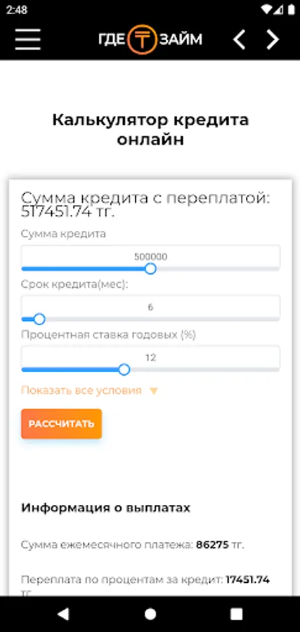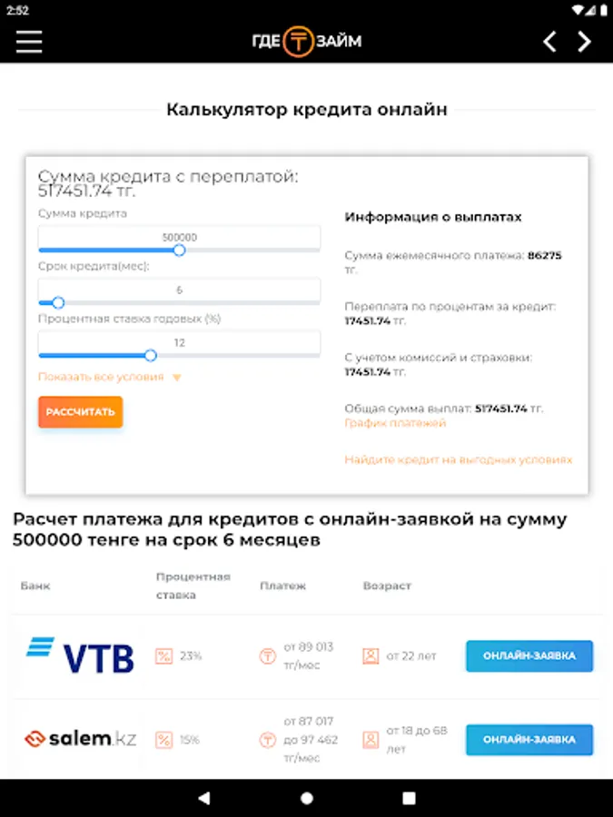 Install the application about loans and loans in Kazakhstan and get access to offers from the best banks in Kazakhstan. Our application will help you find the best conditions for credit and loans. You can compare offers from different banks and choose the one that suits you best. Our application is fast and convenient and you can use it anytime and anywhere. Install it now and start saving money on loans and borrowings!