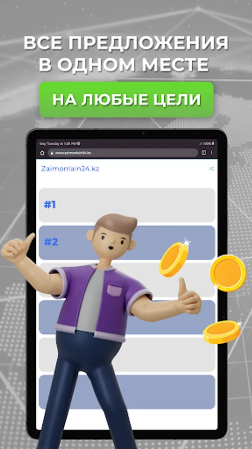 When financial difficulties arise, we can all need urgent financial support. At such moments, you can turn to online loans, available around the clock. However, we offer you something more. Using the ZAIMONLAIN24 KZ mobile application, you can not only access a wide range of microfinance offers, but also compare them and choose the most profitable option in just a few minutes. Attractive rates, flexible terms and ease of registration make ZAIMONLAIN24 KZ an ideal choice for those who are looking for a convenient and affordable loan. Try it yourself and enjoy all the benefits of the app!