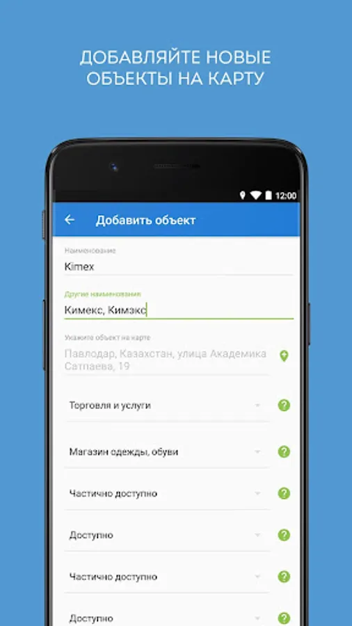 In the absence of an object on the map easy to use interface provides an opportunity to anyone who wishes to share with other information about the availability of the object.