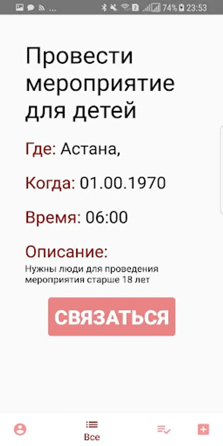 In Kazakhstan, the problem of volunteering is very acute and this application is intended