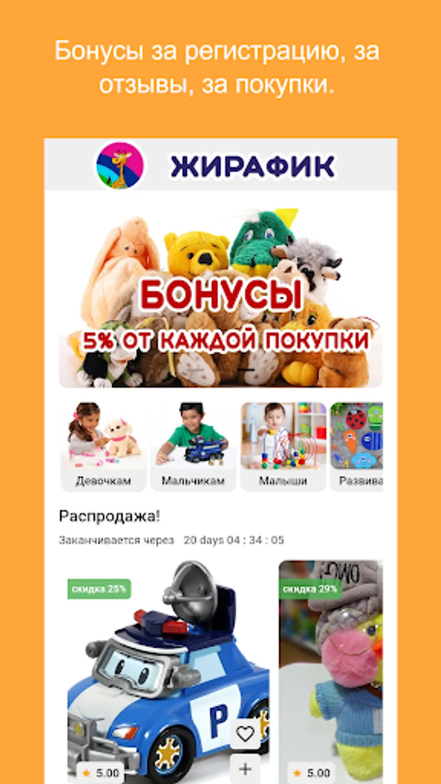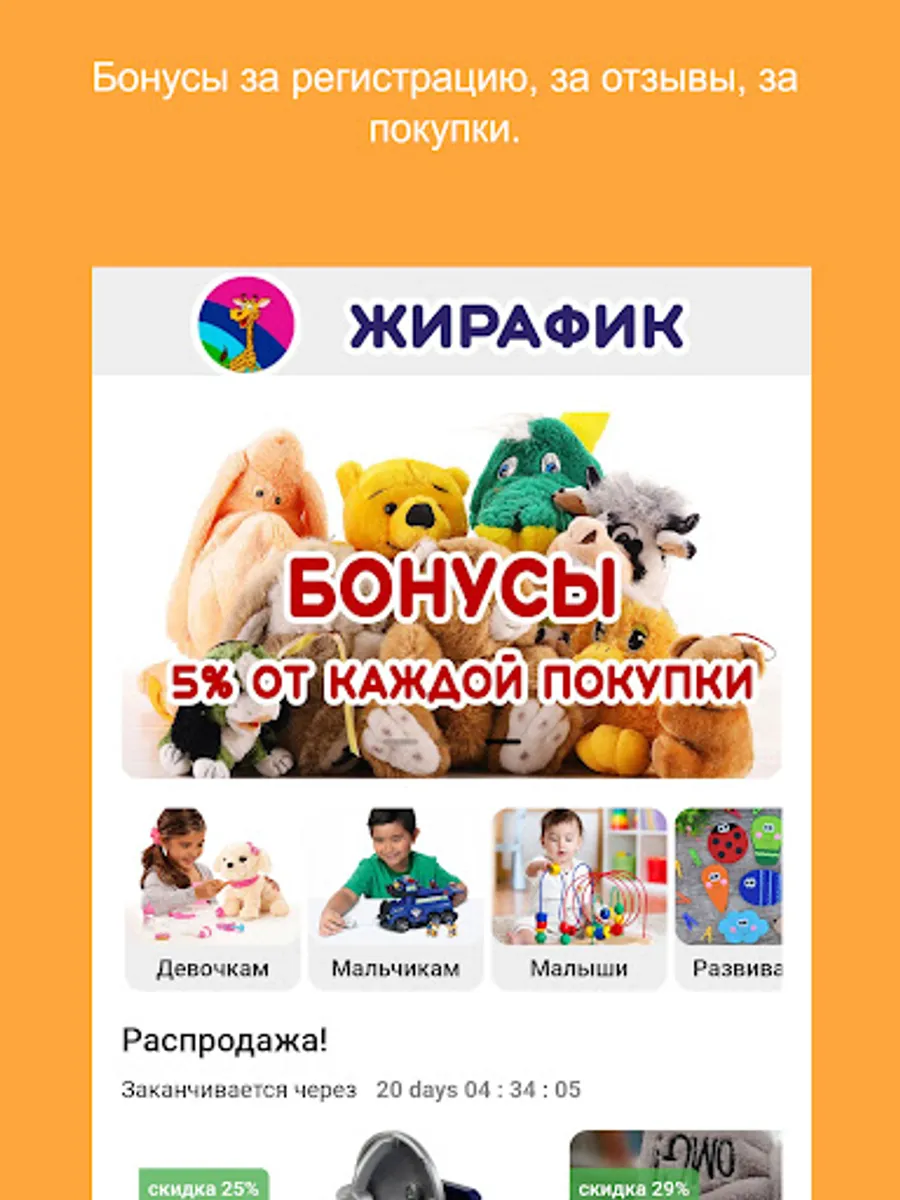 Online store of cheap toys. If you are looking for: children's toys, toy store, buy toys then this application is for you. We work throughout Kazakhstan. Giraffe toy store.