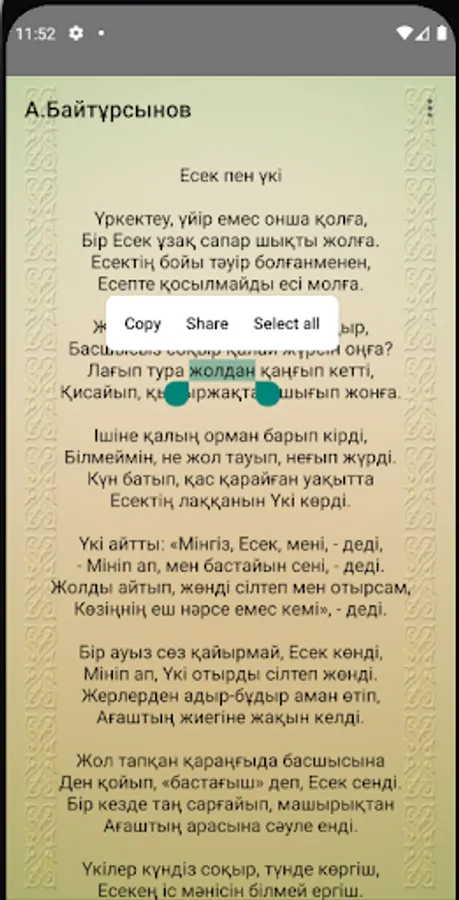 Poet, literary scholar, turkologist, publicist, teacher, translator, public figure Place of birth - Tosyn volost of the former Turgai district (now Akkol village of Zhangeldin district of Kostanay region). 1882-84 studied in a rural school. 1890 Two-class, Russian-Kazakh school in Turgai, 1895. He graduated from the Orenburg Teachers' School. 1895-1909 She works as a teacher in schools and Russian-Kazakh schools in Aktobe, Kostanay, Karkaralinsk districts. 1909 He was imprisoned in Semipalatinsk in 1910 for protesting against the policies of the tsarist government. deported. 1913 He organized the Kazakh newspaper in Orenburg and was its editor until the end of 1917. After the overthrow of the tsarist government, the national liberation movement intensified. 1918-19 He will be in Alashorda. 1919 On June 24, he was appointed a member of the Military Revolutionary Committee, which ruled the Kazakh region. 1922-25 Chairman of the Scientific and Literary Commission under the People's Commissariat of Education of Kazakhstan, Commissioner for Public Education, member of the All-Russian Central Executive Committee, the Central Executive Committee of the Republic of Kazakhstan, a member of the Central Committee of the Communist Party of Turkestan. 1925-29 He was a lecturer at the Kazakh Institute of Public Education (Tashkent) and KazPI. 1929 He was arrested in June and deported to the Arkhangelsk region, and his wife and daughter were sent to Tomsk. 1934 E., who served in the Red Cross Commission. Ahmet Baitursynov was released at the request of Peshkova (Maxim Gorky's wife). At that time he returned to Almaty with his family. 1937 Ahmet Baitursynov was arrested again in October, and two months later, on December 8, he was shot dead as an "enemy of the people." Saken Seifullin commented on Ahmet Baitursynov: ... Ahmet was the only Kazakh in the tsarist era who endured insults, enslaved, slept, and mourned the loss of his nation. While some Kazakh students of that time worked hard for the district and provincial courts, as translators, and some in search of glory, Ahmet selflessly served the Kazakh nation ... in search of the people and put his head in the race for what he thought. Mukhtar Auezov said: The Kazakh school opened by Akhan, the native language of Akhan, the embassy motto in the literature created by Akhan - "Forty examples", "Masa"; The work of the "Kazakh" newspaper for the weeping Kazakh child, his tireless efforts in the field of art, education and politics were things that we will never forget, but history will never forget. However, the Bolsheviks, accustomed to using force and violence, tried to deny this fact and erase both his name and his work from history. He was portrayed as an enemy of his people, who devoted his life to his faithful service, and he was disguised as an "enemy of the people," shot, and persecuted. Still, they did not succeed. The tsar criticized Russia's exploitative-colonial policy and the treachery of officials who enslaved their subjects. The first poems of the poet were published in the translation collection "Forty examples" in 1909. Published in St. Petersburg. Through this book, he spreads all his energy and knowledge to awaken the minds of the sleeping people in the dark land. At the end of each translation, the poet added his main idea, the key issue, in accordance with the life, character and psychology of our people at that time. Baitursynov's second book - "Masa" (1911). In the poems included in this book, the poet criticized such shortcomings as ignorance, indifference to work, professionalism. Many of his poems were in line with the enlightenment of the time. He seemed to be a continuator of the traditions formed by Chokan, Abai, Ibrai, the field of humanistic and democratic ideas. He thinks about the environment, is critical, is not satisfied with the state of society. "Kazakh tradition", "Kazakh, lie", "Letter to a friend", "Collected", "Wish", "Words of the enemy", "Garden" and others. The content of his poems shows this. The inner melody and thought of the book, the wording of the book brought a kind of novelty, a special change inherent in Kazakh poetry.