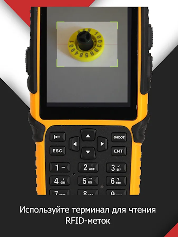 It supports reading bar codes from ear tags and numbers from RDIF tags when using supported terminal models or additional Bluetooth scanners.