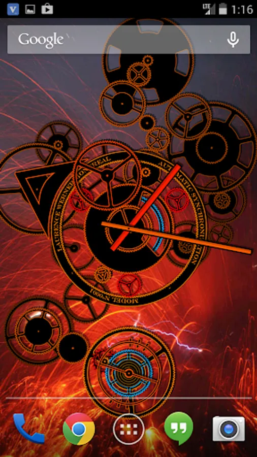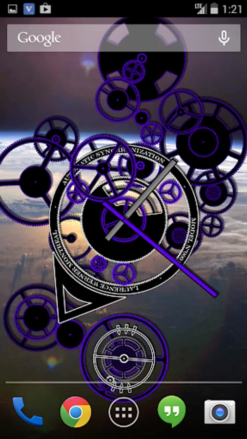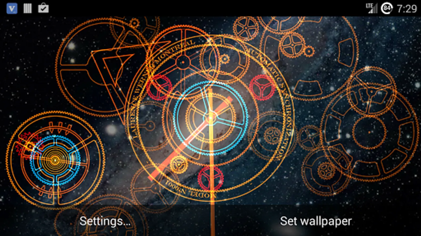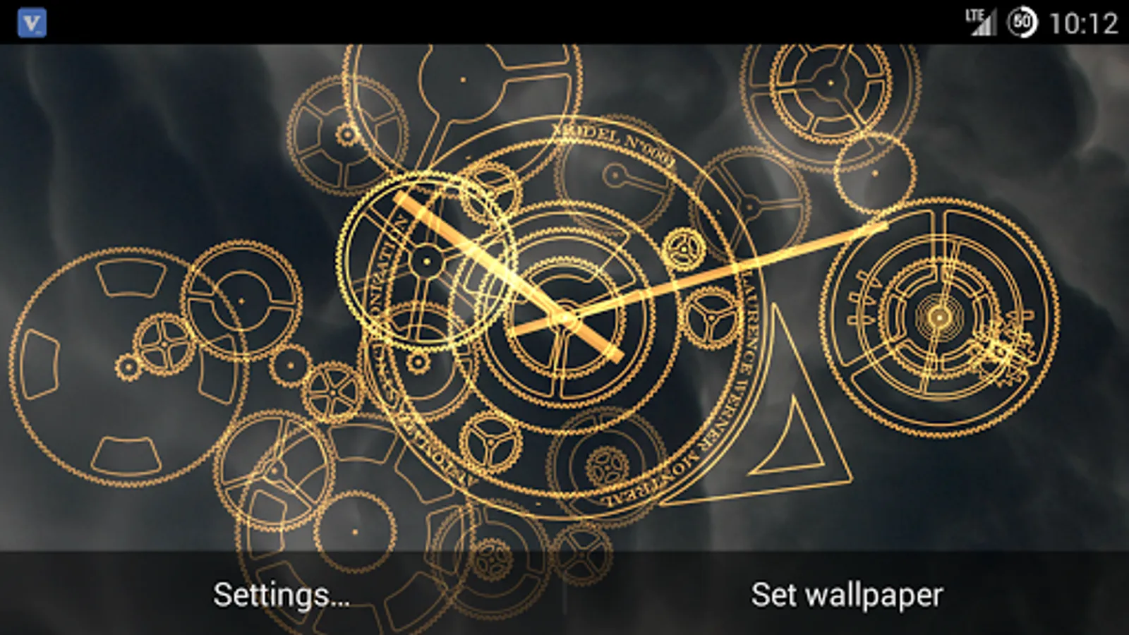Hypno Clock Live Wallpaper is a live wallpaper portraying an abstract interpretation of the animated gears and parts of a mechanical watch, complete with a variable speed Swiss Tourbillon escapement, realistic component motion, and millisecond precision time keeping; it really captures the magic of clockwork! It is arguably the most mechanically accurate clockwork-inspired live wallpaper available for Android.
