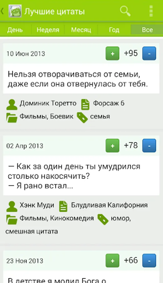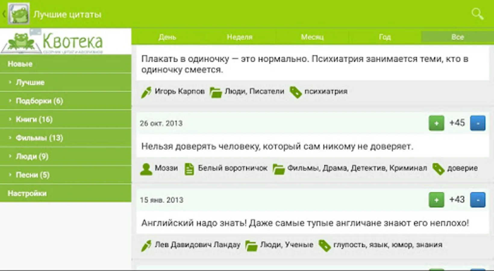 Kvoteka - a collection of quotations and aphorisms of famous people, as well as the expressions and the phrases from movies, songs and books.