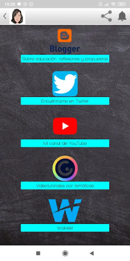 From the #IngridApp you can access all my networks: Twitter, Wakelet, YouTube and my blog.