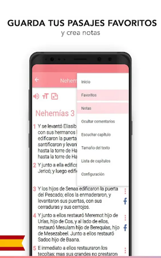 👍 Create highlighted verses and mark your favorites: with this system you can mark the verses, but also save them in a folder to access them whenever you need it. Create your own database of Bible passages and arrange them by date.