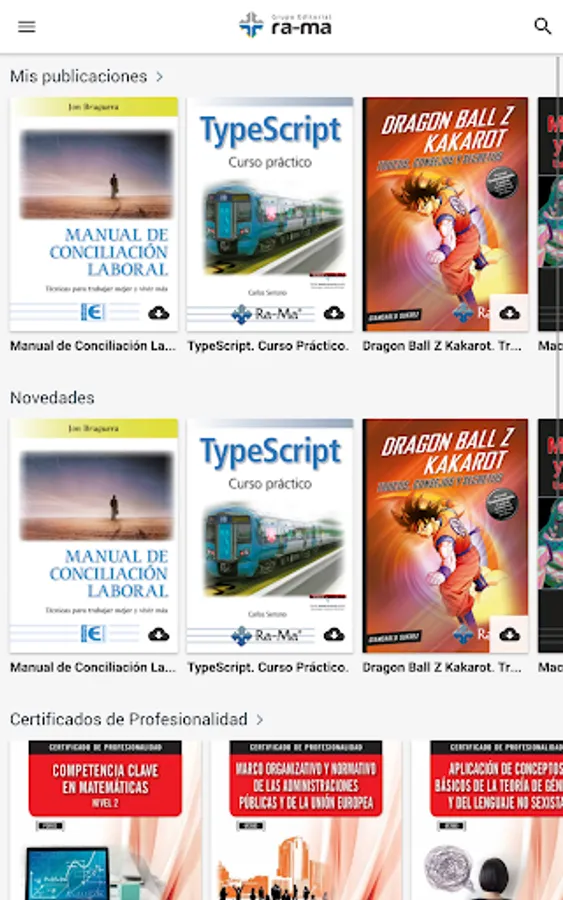 What does the Grupo Editorial RA-MA app offer?