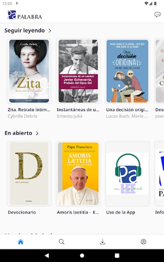 The Ediciones Palabra e-book reading app is your ideal companion to enjoy a wide variety of books from your mobile device. Designed to offer a comfortable and personalized reading experience, this app allows you to access books on spirituality, theology and biographies, among others.