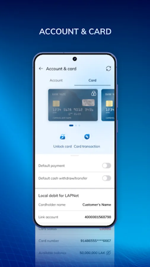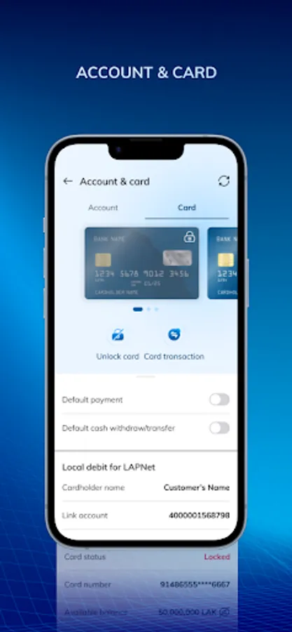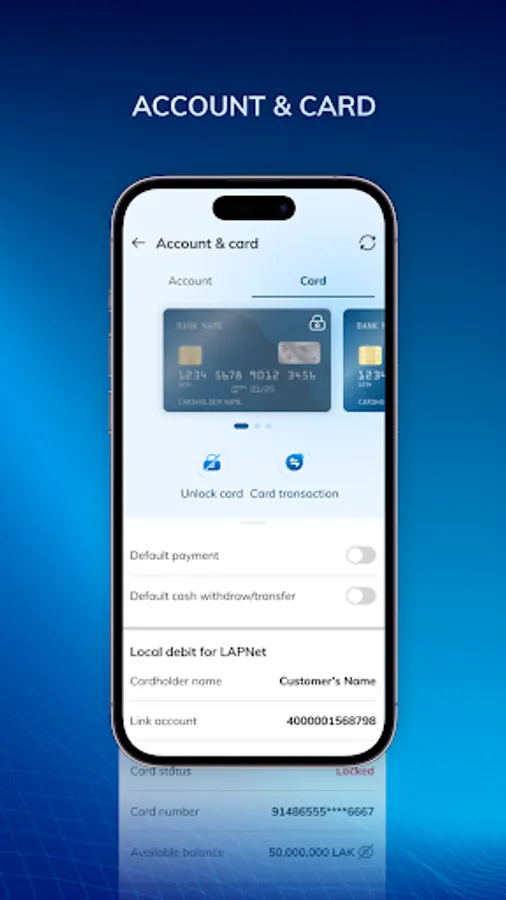 – Card information: balance, transaction history, credit limit.