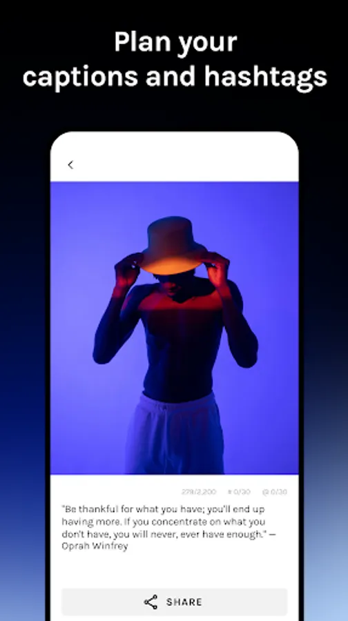 + Use advanced editing tools like HSL, Whiten, Border, and more to create the perfect post for any social media platform. Own the details.