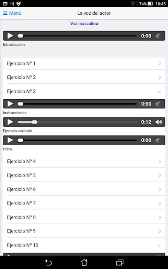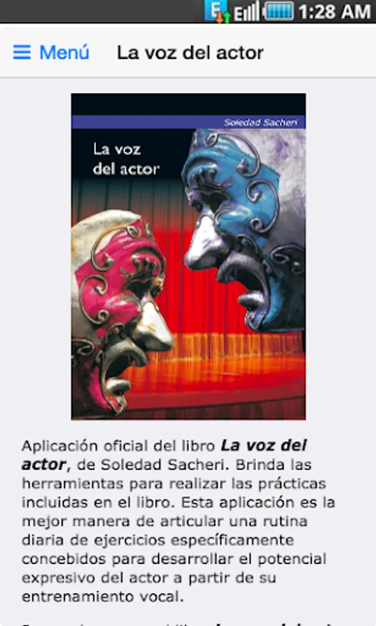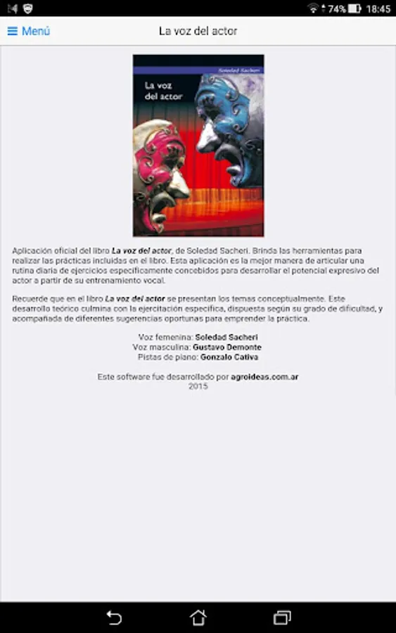 Official application of "The voice of the actor," Soledad Sacheri. It provides the tools to make the practices included in the book. This application is the best way to articulate a daily routine of exercises specifically designed to develop the expressive potential of the actor from his vocal training.