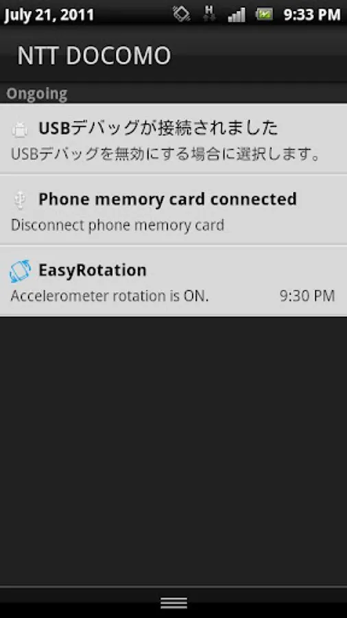EasyRotation is the notification area (the status bar) resides. You can switched on or off automatic screen rotation setting with one-click.