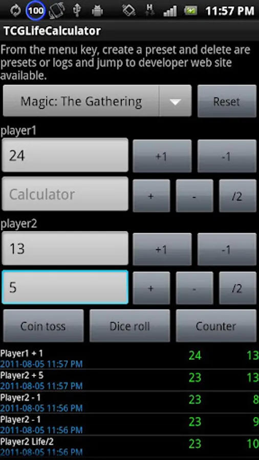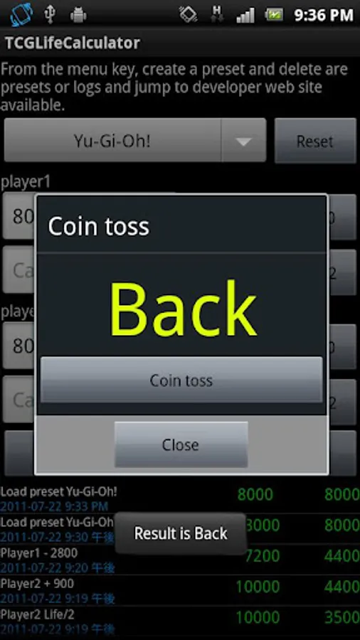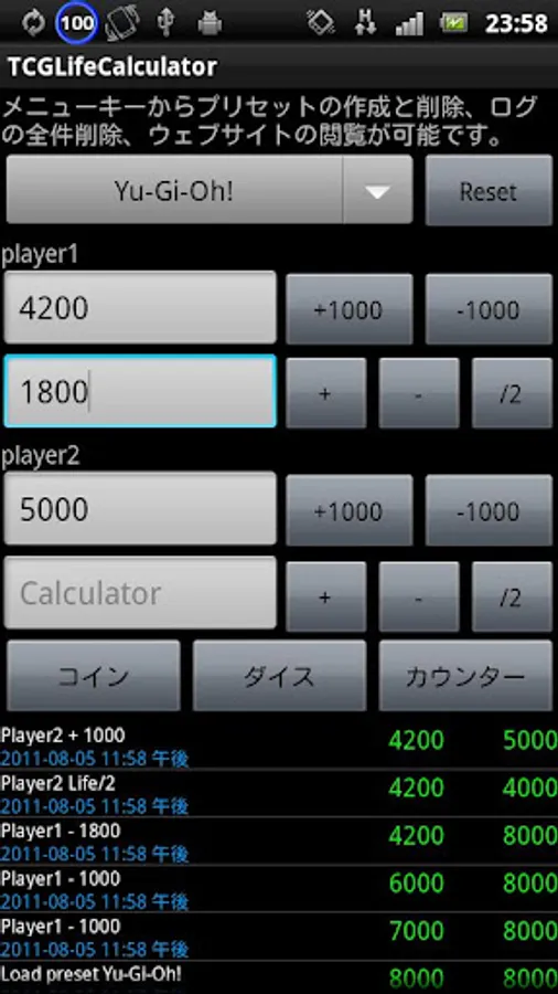 This application is support many card games(Yu-Gi-Oh! and MTG and the others) and simple and easy TCG life calculator.