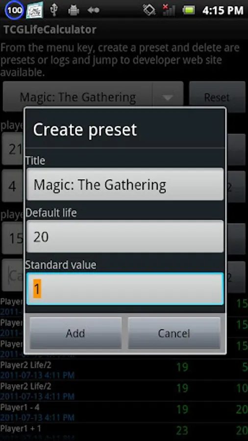 ・Set Default presets.(Yu-Gi-Oh! , Magic The Gathering)