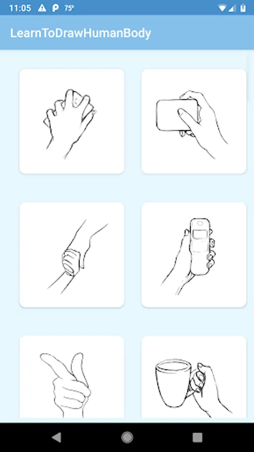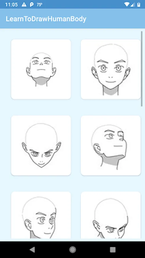 This application helps users drawing human body step by step way. It offers different categories for each part of human body. and each part has a set of images which make drawing more easier and interesting..