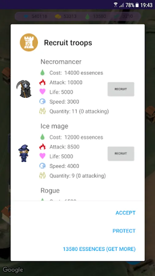 Each building allows you to recruit different troops like vampires, paladins, necromancers, horsemen and many more!