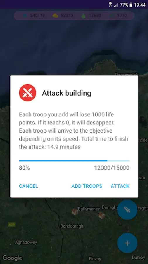 Add buildings in real locations around the world without moving from the couch, use them to recruit troops that will allow you to invade your enemies, and become the greatest emperor on the planet.