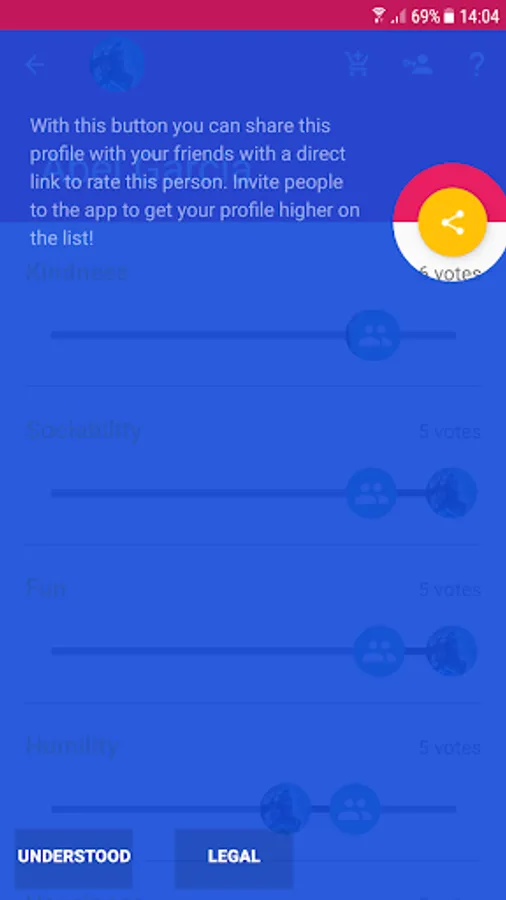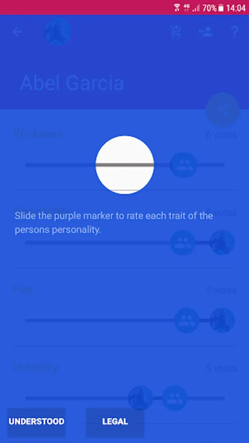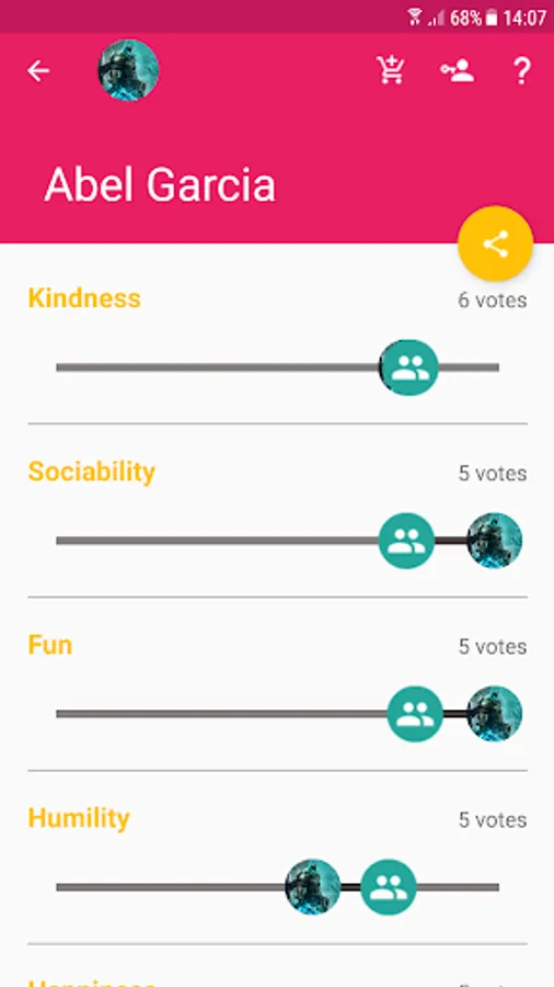 Vote and rate each of the personality traits of your friends: Kindness, sociability, fun, humility... Only by sliding a horizontal bar!