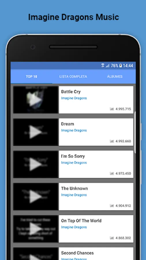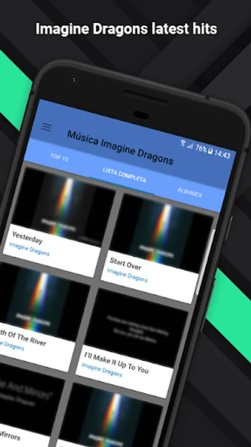 In addition, the design of our new app allows you to find everything you are looking for quickly and easily. Forget about searching among thousands of folders and other paradigms. Our design is the most intuitive and is created just for you to enjoy the music of Imagine Dragons and nothing else. So if you want to always have them in your head and listen to all their songs continuously you can do it with this app dedicated exclusively to Imagine Dragons.