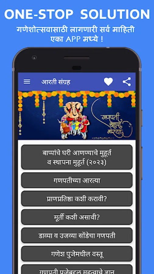 All information Needed for ganesh chaturthi & ganpati utsav is now in single app 'Ganpati Aarti Marathi'.