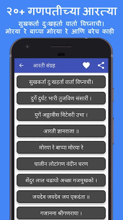 'Ganpati Aarti Marathi' contains all ganesh songs like sukhkarta dukhharta, ganpati stotra & ganesh bhajan.