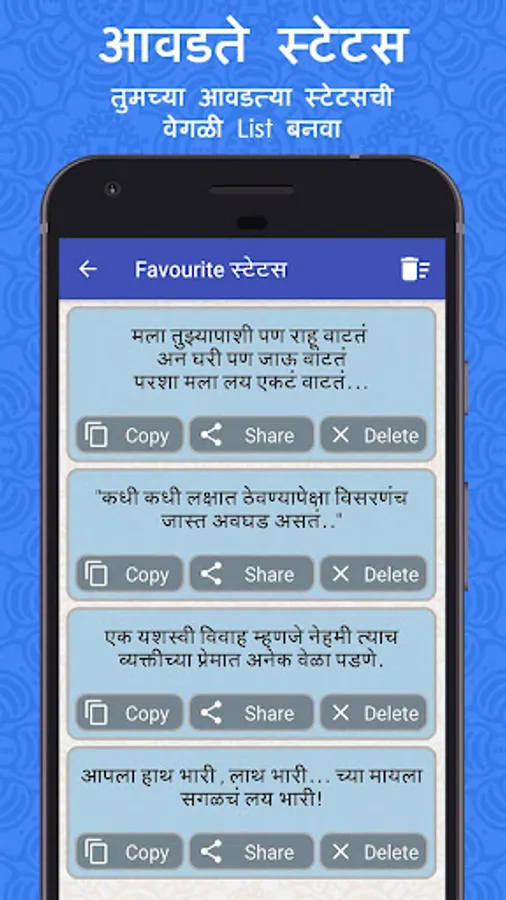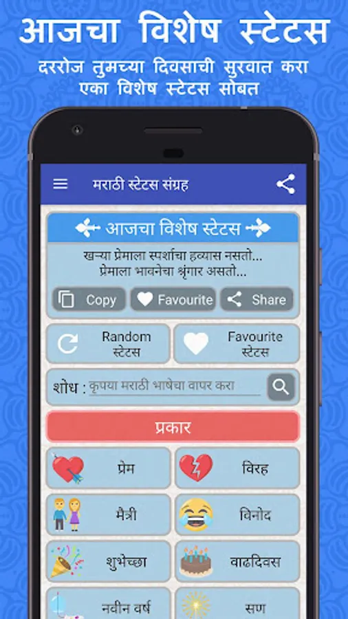 • Favorite Status: Make separate list of your favorite Status marathi.