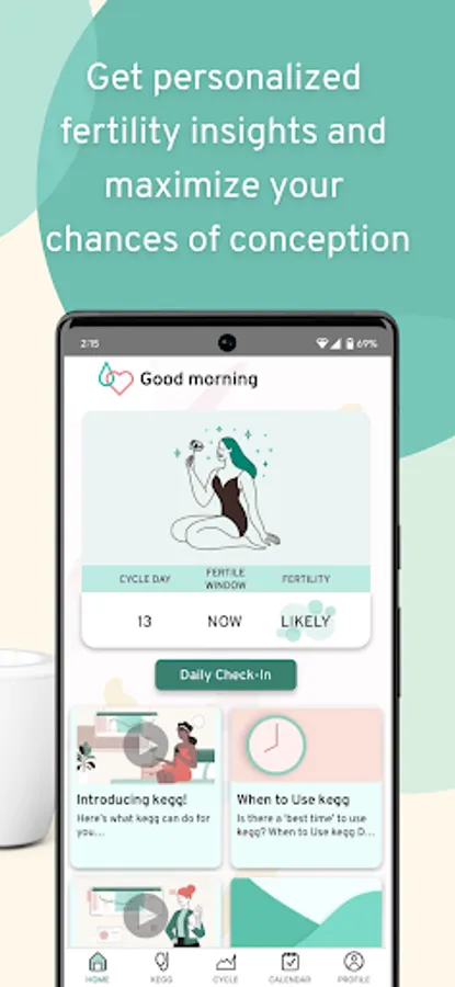 kegg fertility predictions are unique to each woman. With consistent use once a day, you will gain personalized insights into your own fertility pattern. kegg will be at your side and nothing will be left up to chance.