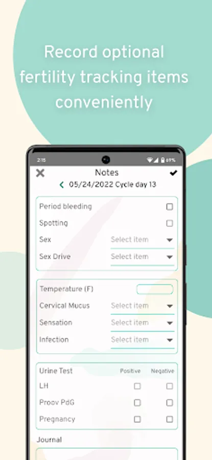 + Log other optional fertility data in the app like urine test results, sexual activity, basal body temperature, and much more!
