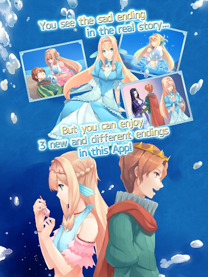 You see the sad ending in the real story but you can enjoy 3 new and different endings in this app!