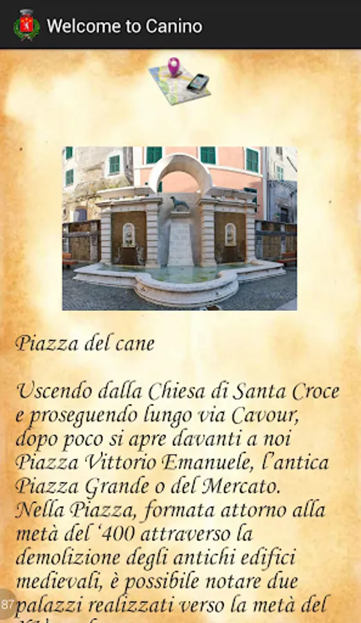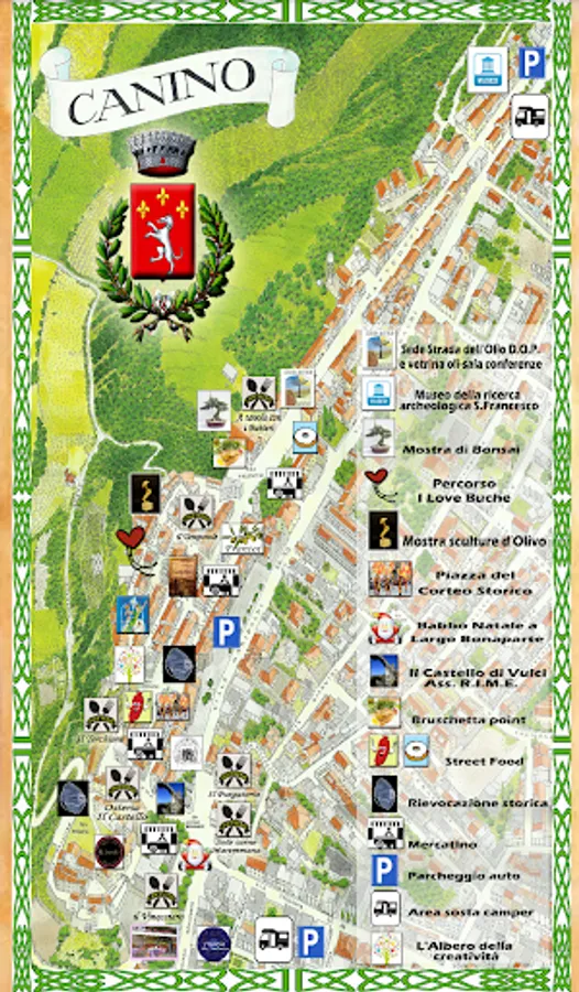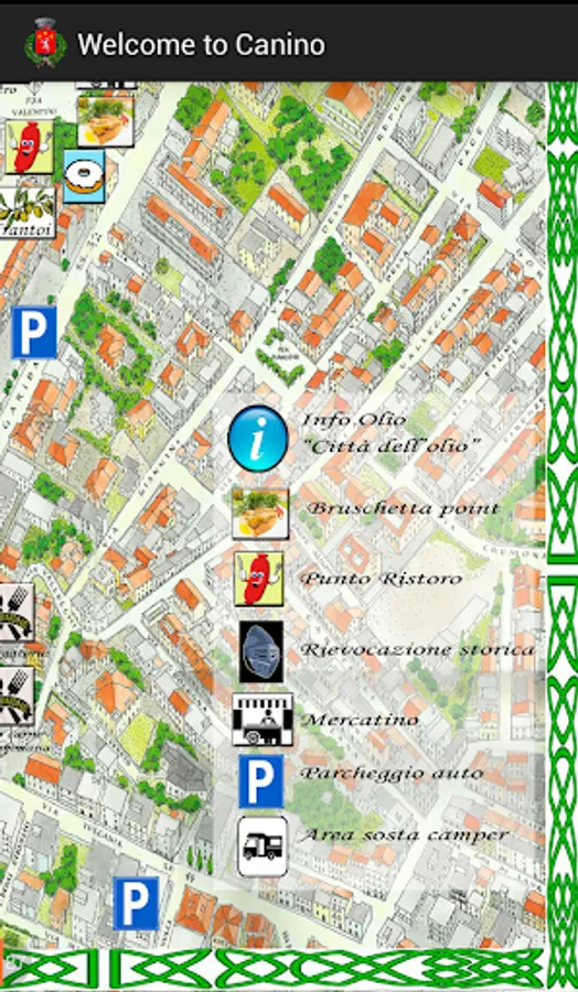The App will interface with existing sites developed by the City of Canino (eg. Website of the Municipality), with Facebook and external links and offers: on / off line maps, routes with points of interest, toast notifications, calendar of events Municipality, the list of hotels and accommodation facilities such as restaurants and bars cantinoni, links to the mills and directions to get there and move to and from Fang, the useful services (phone numbers, schedules pharmacies etc.), please contact the company thanks to the connections institutional sites in the country.