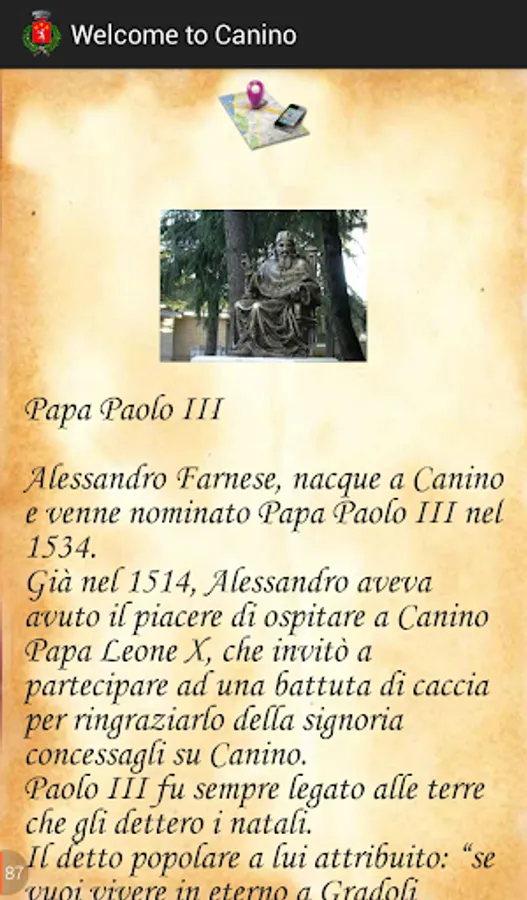 Welcome to Fang, developed for the Proloco of Canino, by 's Ing. Laertes Olmelli and graphic Dario Grains is a useful tool to learn about Canino and its festivals.