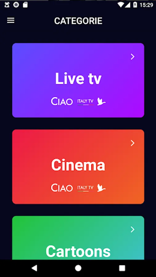 an IPTV platform designed to give our emigrants in the two sections “LIVE TV” and “CINEMA” a free information service directly from Italian regional and local television stations we like to thank for participating in our project as well as on Italian art cinematography, culinary, documentary films, with the aim of promoting the knowledge both by old and new generations of emigrants of today Italian reality and our past artistic and cultural heritage.