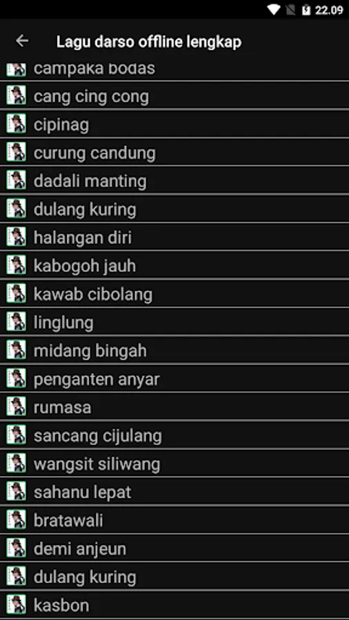 This mp3 player application contains complete offline Darso Sundanese pop songs.