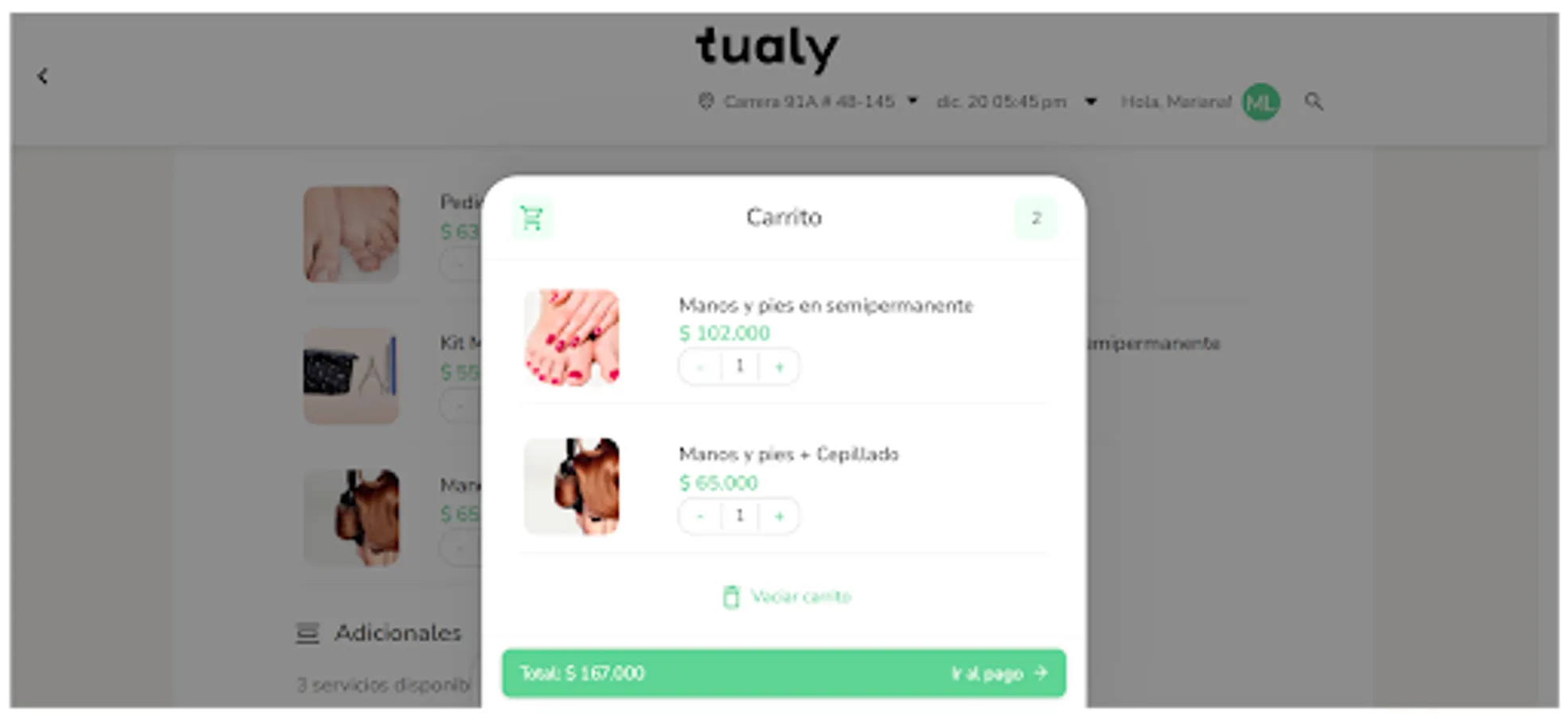 tualy is very easy to use; You just have to choose your ritual, time, location and payment method to secure your appointment and our professionals will arrive fully prepared with everything you need to live a unique experience in the comfort of your home.